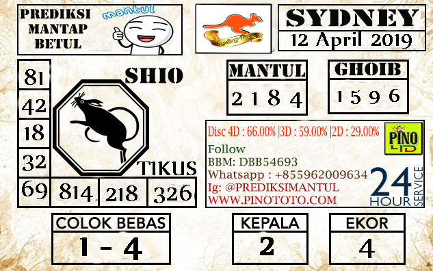 PREDIKSI TOGEL SYDNEY POOLS 12 April 2019 Pino 4D